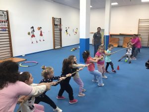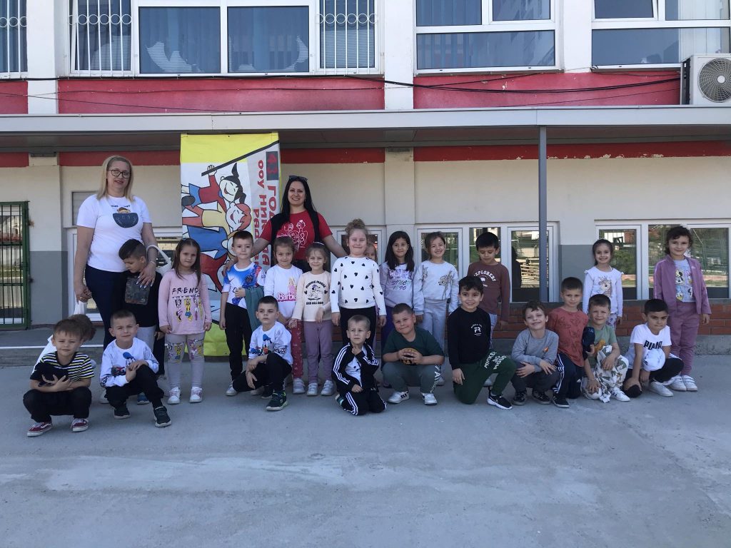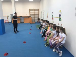 Дечињата во новата спортска сала на училиштето одржаа час по физичко и здравствено образование.