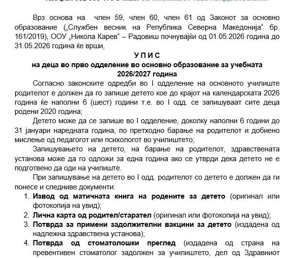 ООУ „НИКОЛА КАРЕВ“