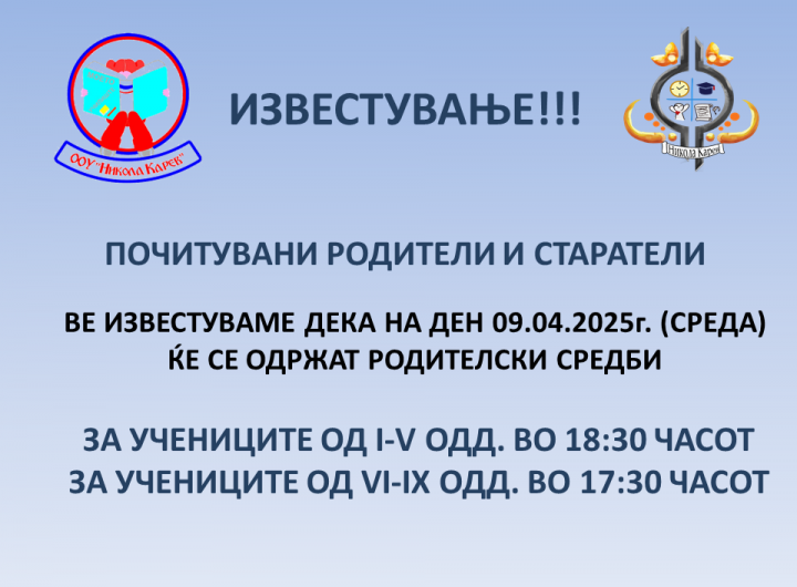 Во просториите на ООУ „Никола Карев“ –Радовиш на 27.3.2025г. се одржа Меѓународниот математички натпревар КЕНГУР БЕЗ ГРАНИЦИ-2025....
